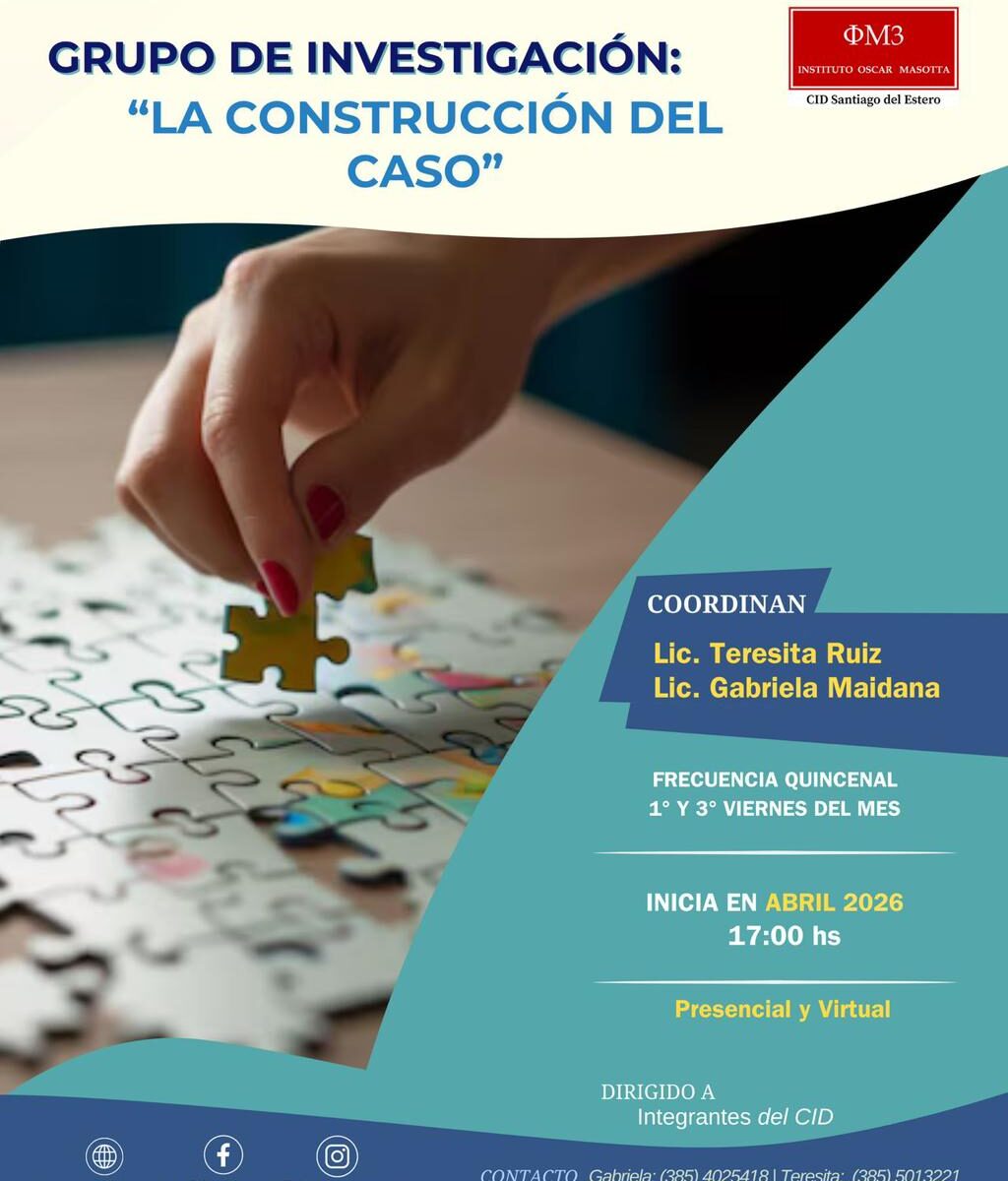 El grupo de investigación La construcción del caso, que se desarrolla en el marco del CID Santiago del Estero -perteneciente al Instituto Oscar Masotta (IOM3)-, se propone como un espacio de trabajo orientado a la elaboración y transmisión de la práctica analítica a partir del caso clínico. En continuidad con el recorrido realizado en años anteriores, el grupo retoma algunos interrogantes que orientan esta tarea: ¿qué es un caso clínico?, ¿cómo se lo elige?, ¿qué se busca transmitir al presentarlo?, ¿por qué se trata de una construcción? A partir de estas preguntas, el trabajo se centra en la elaboración de los casos para ser presentados en el Ateneo Clínico que acompaña las clases del Seminario de Formación Permanente del CID, tomándolos como punto de partida para interrogar la lógica de la cura y las decisiones del analista en su dirección.
