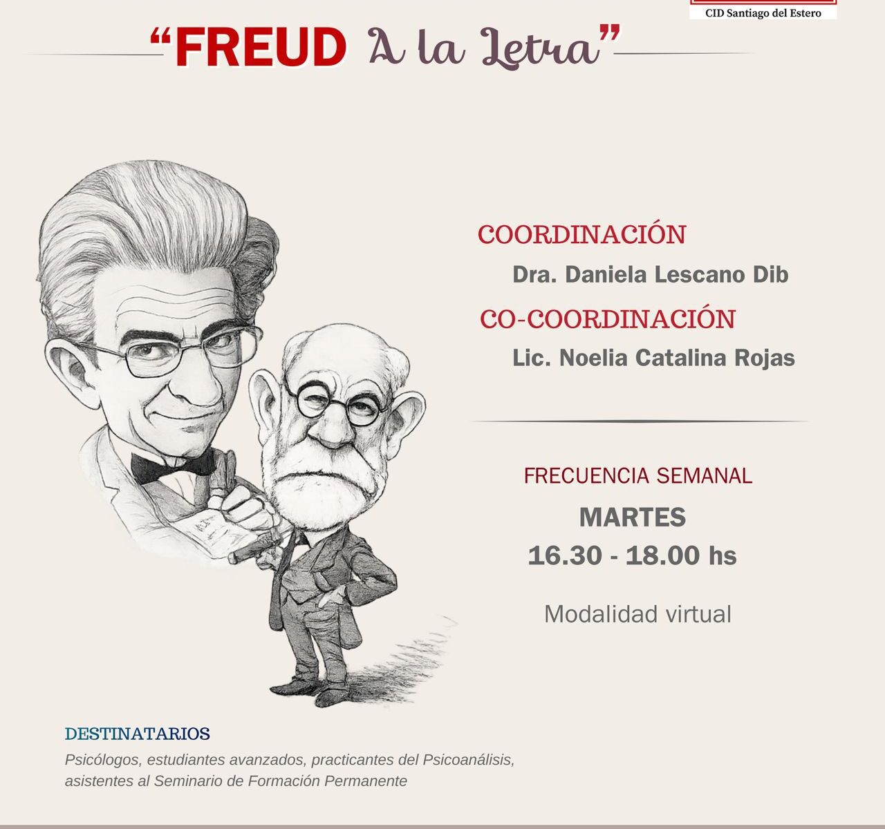 El grupo de Lectura Freud a la Letra comienza en el año 2023, como una necesidad de recordar y trabajar antiguos textos fundantes del Psicoanálisis. Adentrarnos y volver a la lectura de Freud, para poder acompañar las enseñanzas de Lacan, no sin vueltas y complejidades.