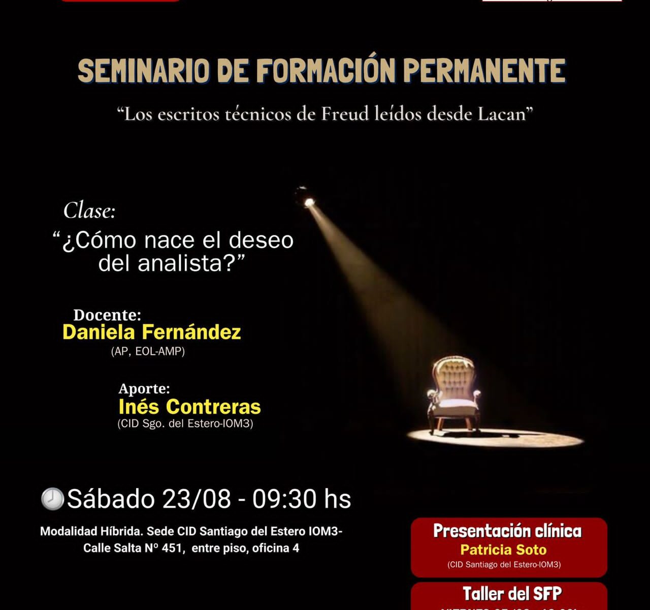 En la clase, que tuvo lugar el sábado 23 de agosto, Daniela Fernández partió de una indicación: no hay otra forma de producir un analista si no es a partir de la experiencia de un análisis. En este contexto, nace el deseo del analista. Y es algo que debe encarnarse en tanto función.
